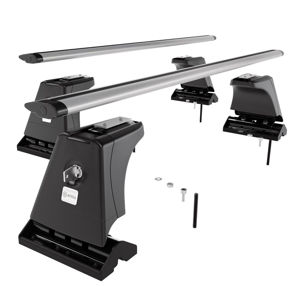 - 4 Fußsätze (Halter) – für Dächer mit werkseitigen Fixpunkten (die Verteilung kann abhängig vom Fahrzeugtyp variieren), Tragfähigkeit 75 kg (oder gem. Empfehlungen des Fahrzeugherstellers).