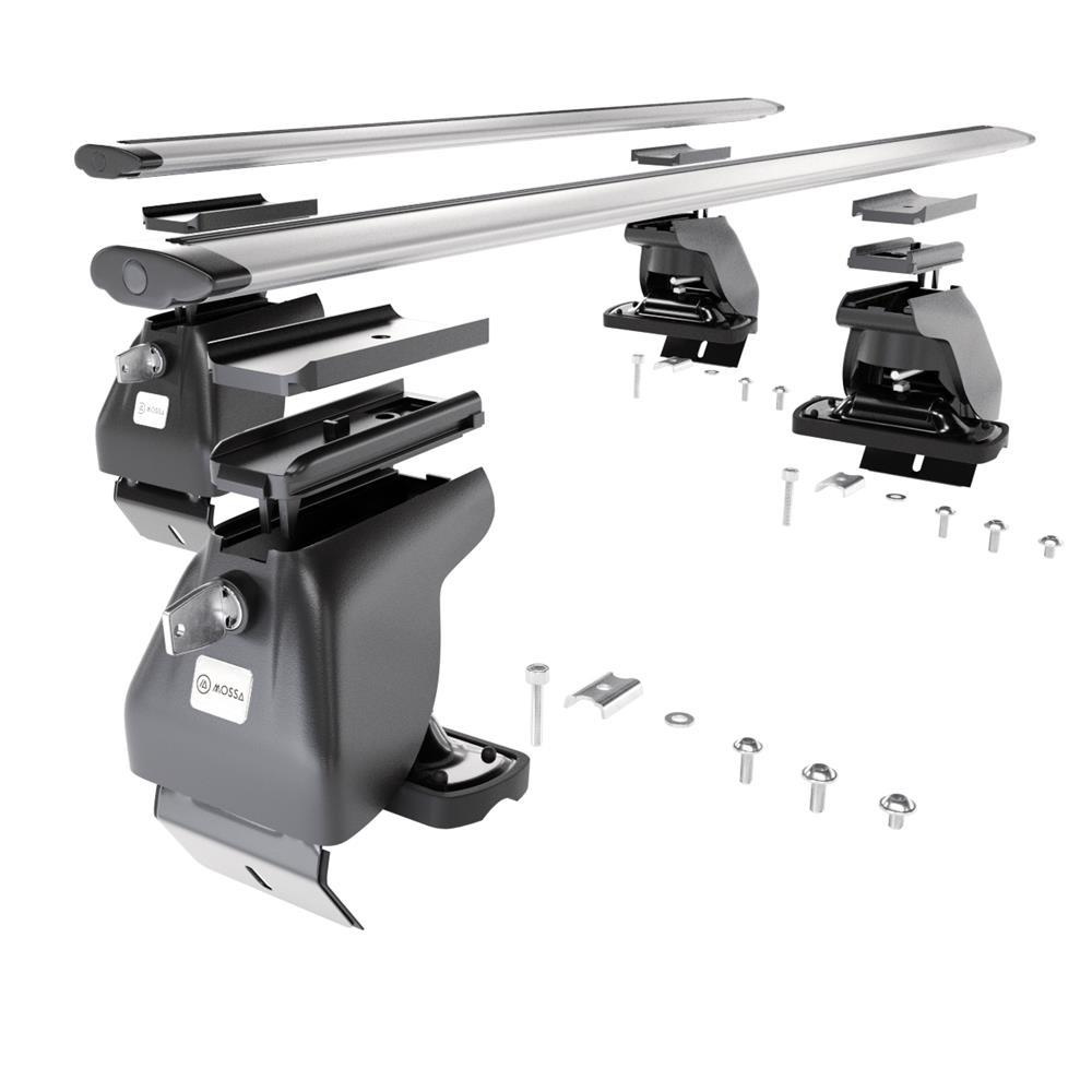 - 4 Fußsätze (Halter) – für standardmäßige Dächer ohne werkseitige Fixpunkte – Montage am Dachrand, Tragfähigkeit 70 kg (oder gem. Empfehlungen des Fahrzeugherstellers).