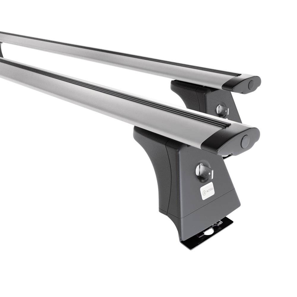 - Der Basisdachträger besteht aus 2 soliden Alubalken und 4 Haltern (sog. Fußsätze), die an den Typ und Generation des Fahrzeugs angepasst sind.