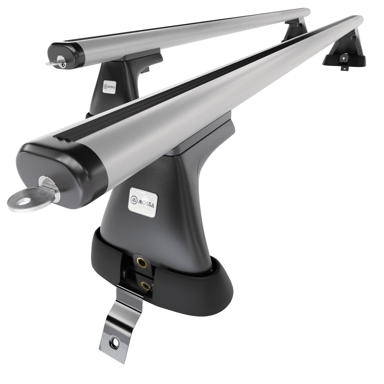 - Der Basisdachträger besteht aus 2 soliden Alubalken und 4 Haltern (sog. Fußsätze), die an den Typ und Generation des Fahrzeugs angepasst sind.