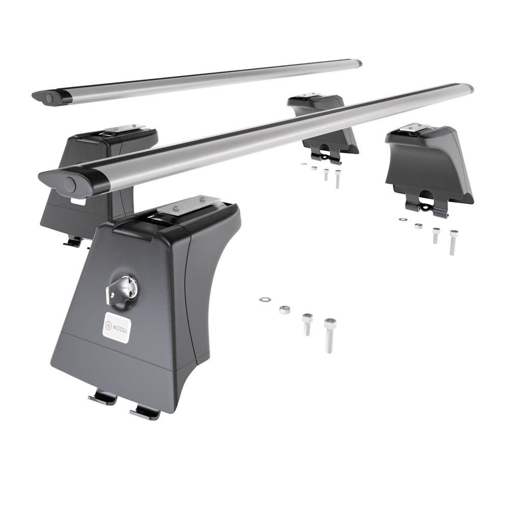 - 4 Fußsätze (Halter) – für Dächer mit werkseitigen Fixpunkten (die Verteilung kann abhängig vom Fahrzeugtyp variieren), Tragfähigkeit 75 kg (oder gem. Empfehlungen des Fahrzeugherstellers).