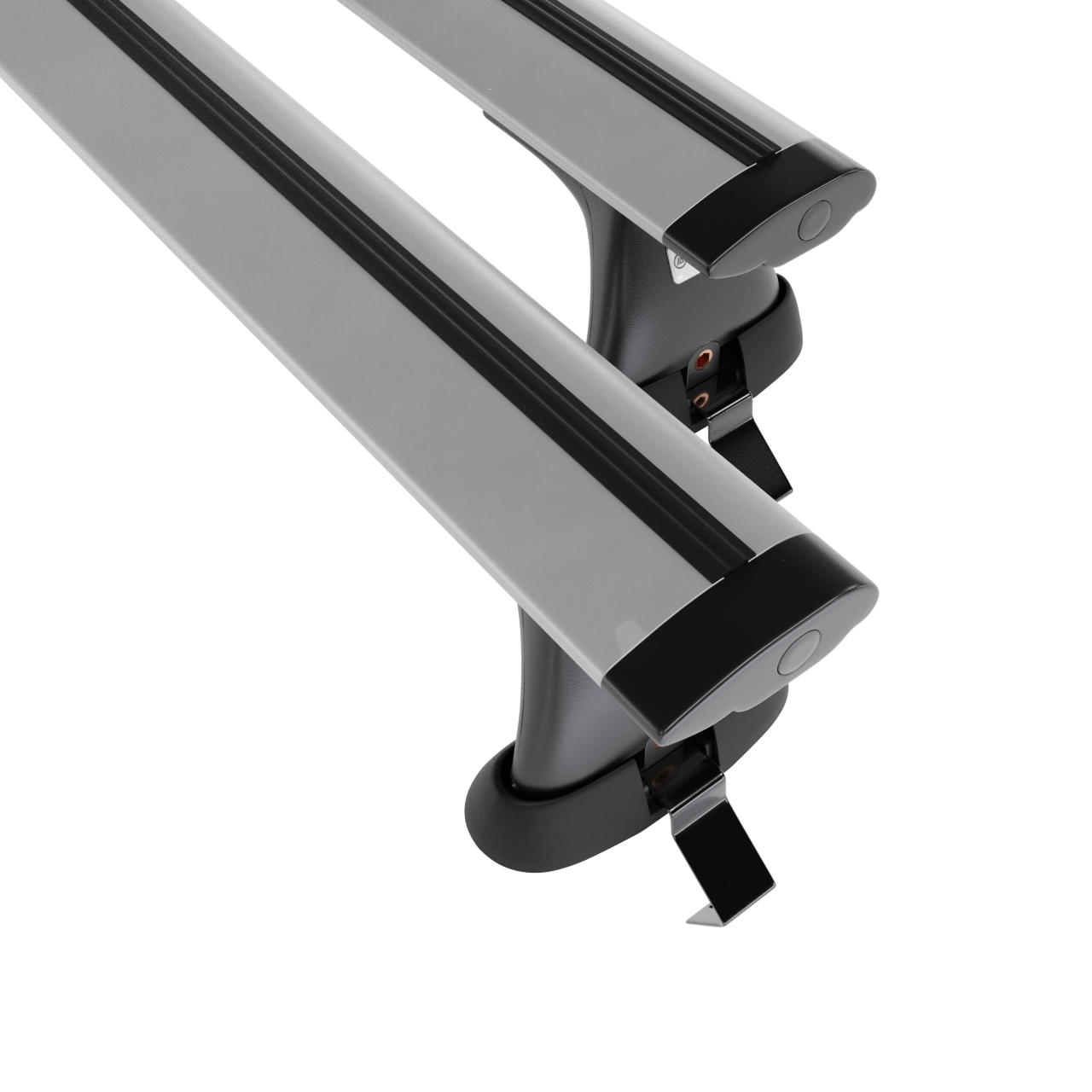 - 4 Fußsätze (Halter) – für standardmäßige Dächer ohne werkseitige Fixpunkte – Montage am Dachrand, Tragfähigkeit 75 kg (oder gem. Empfehlungen des Fahrzeugherstellers).