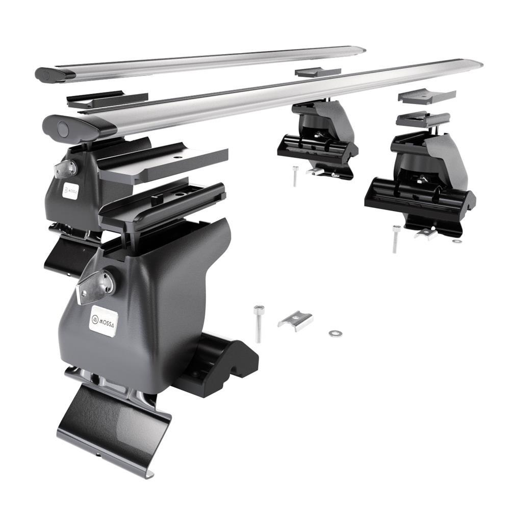 - 4 Fußsätze (Halter) – für standardmäßige Dächer ohne werkseitige Fixpunkte – Montage am Dachrand, Tragfähigkeit 70 kg (oder gem. Empfehlungen des Fahrzeugherstellers).