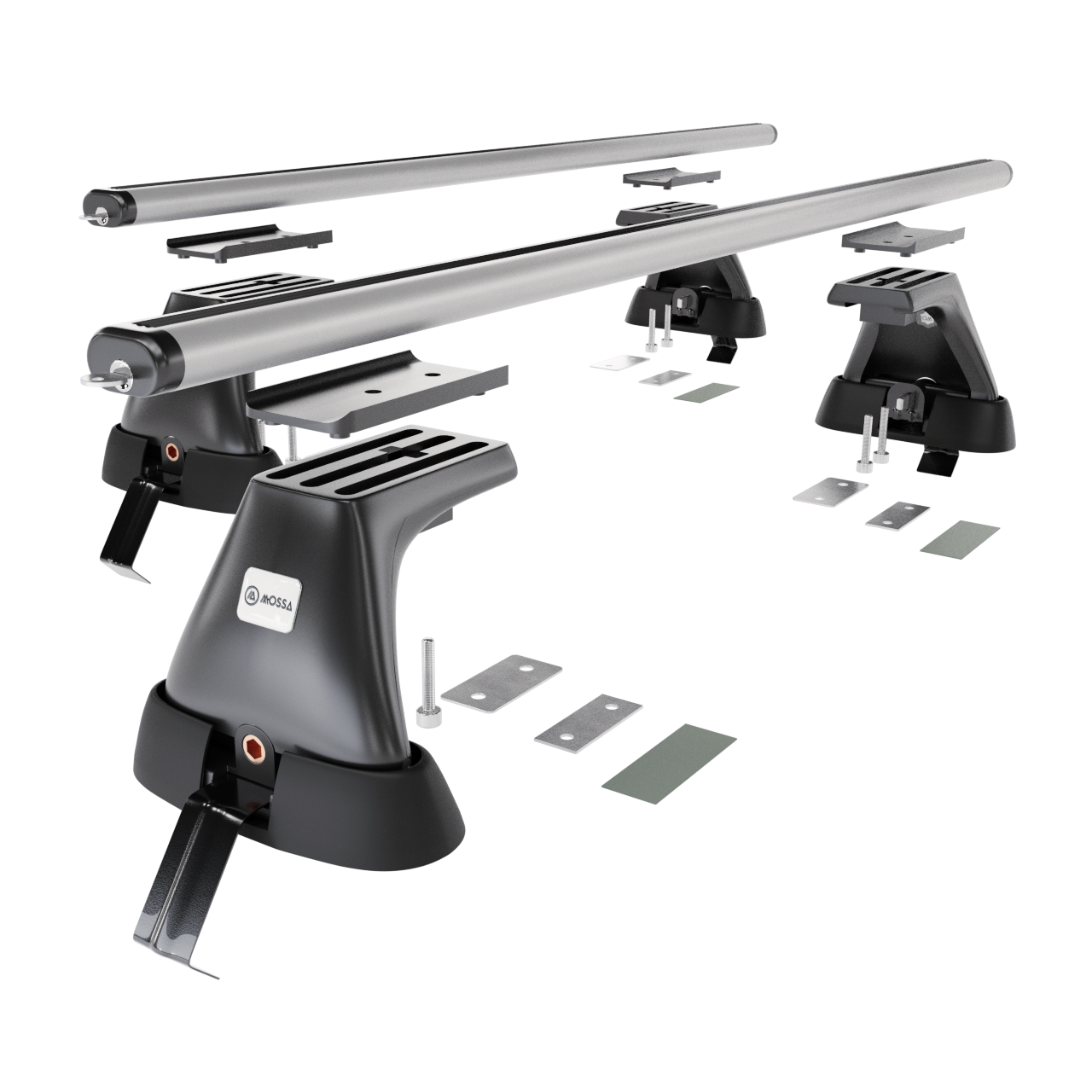 - Der Basisdachträger besteht aus 2 soliden Alubalken und 4 Haltern (sog. Fußsätze), die an den Typ und Generation des Fahrzeugs angepasst sind.