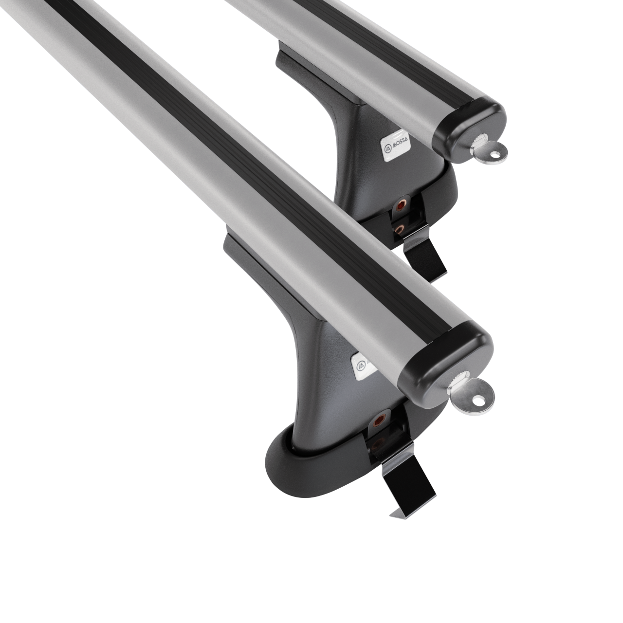 - Der Basisdachträger besteht aus 2 soliden Alubalken und 4 Haltern (sog. Fußsätze), die an den Typ und Generation des Fahrzeugs angepasst sind.