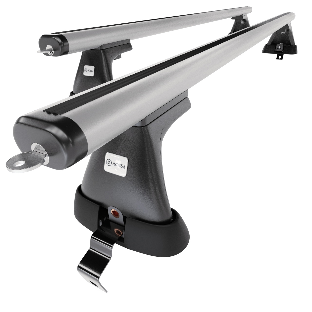 - Der Basisdachträger besteht aus 2 soliden Alubalken und 4 Haltern (sog. Fußsätze), die an den Typ und Generation des Fahrzeugs angepasst sind.