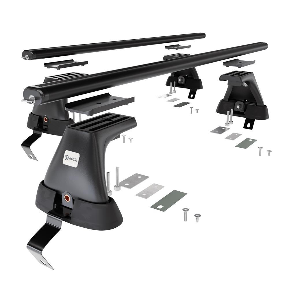- 4 Fußsätze (Halter) – für standardmäßige Dächer ohne werkseitige Fixpunkte – Montage am Dachrand, Tragfähigkeit 75 kg (oder gem. Empfehlungen des Fahrzeugherstellers).