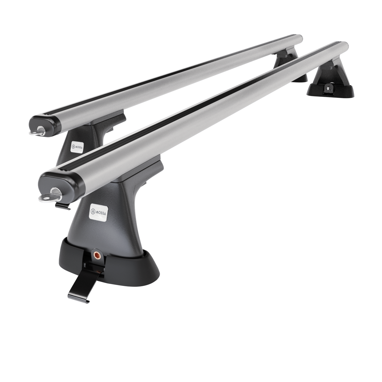 - Der Basisdachträger besteht aus 2 soliden Alubalken und 4 Haltern (sog. Fußsätze), die an den Typ und Generation des Fahrzeugs angepasst sind.