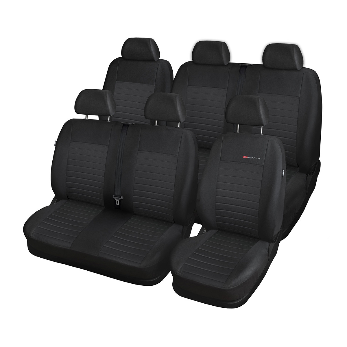 Maßgeschneiderte Sitzbezüge Auto für Volkswagen Transporter T5 Van (2003-2015) - Autositzbezüge Schonbezüge für Autositze - für zwei Reihen (geteilte Rückbank) - E4