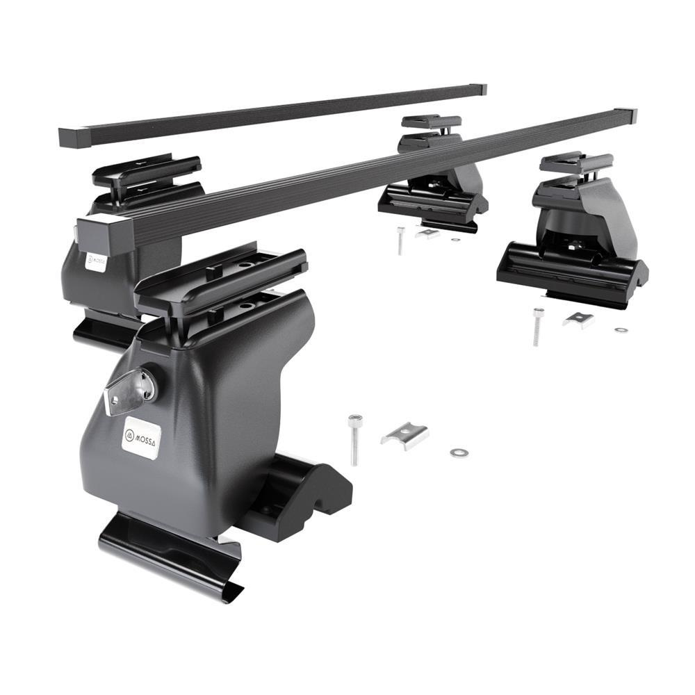 - 4 Fußsätze (Halter) – für standardmäßige Dächer ohne werkseitige Fixpunkte – Montage am Dachrand, Tragfähigkeit 70 kg (oder gem. Empfehlungen des Fahrzeugherstellers).