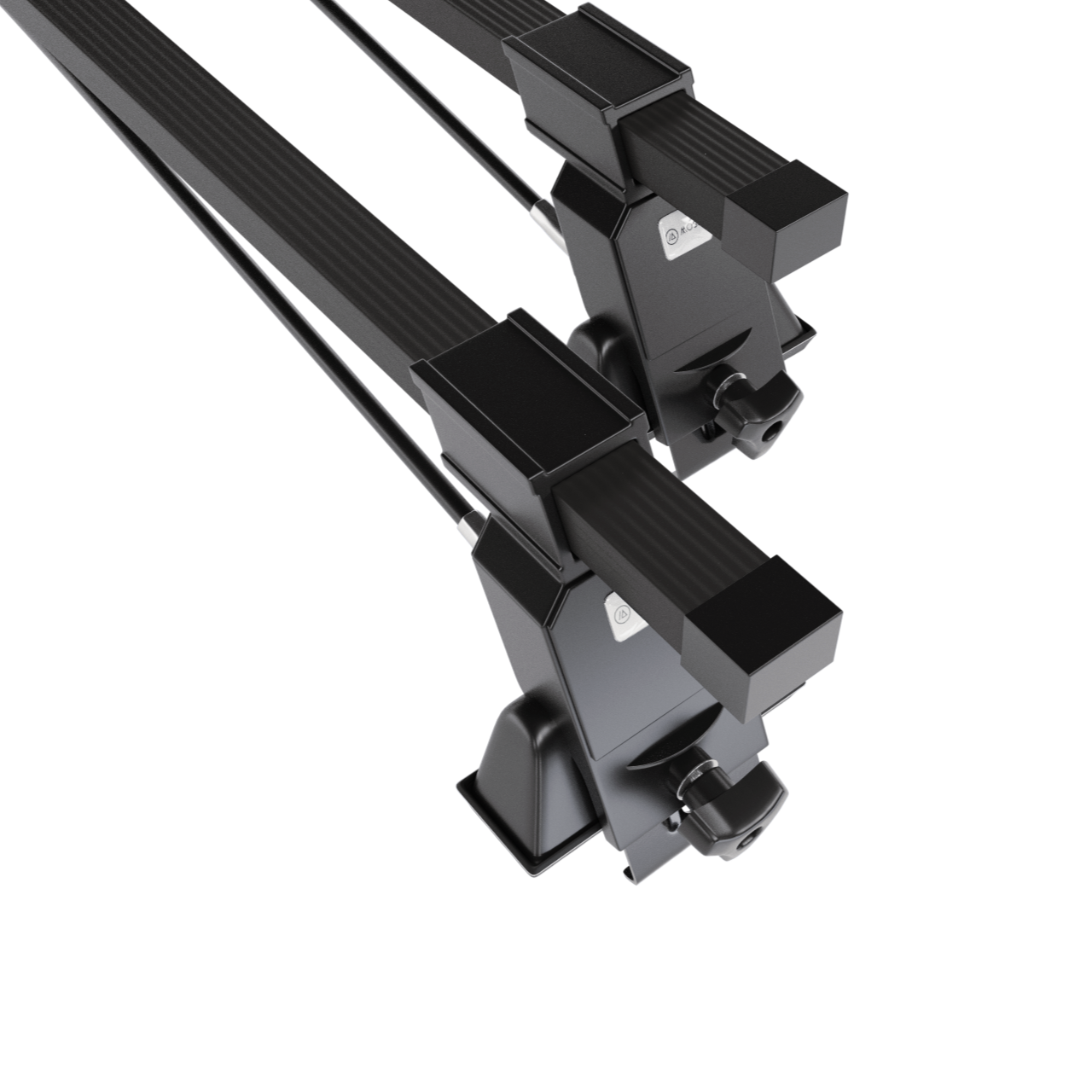 - Der Basisdachträger besteht aus 2 soliden Stahlbalken und 4 Haltern (sog. Fußsätze), die an den Typ und Generation des Fahrzeugs angepasst sind.