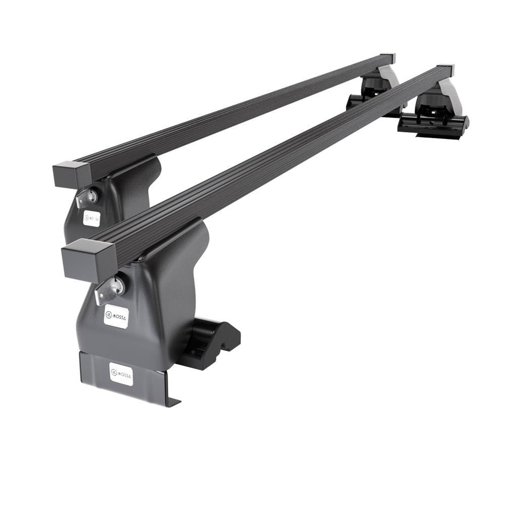 - Der Basisdachträger besteht aus 2 soliden Stahlbalken und 4 Haltern (sog. Fußsätze), die an den Typ und Generation des Fahrzeugs angepasst sind.