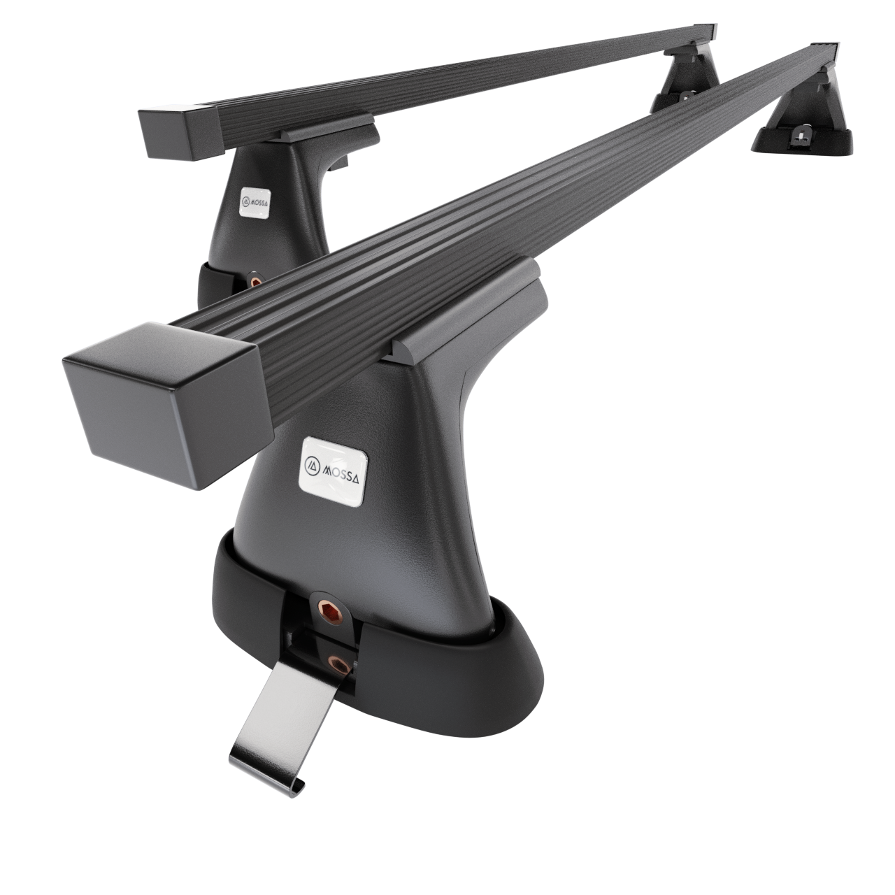 - Der Basisdachträger besteht aus 2 soliden Stahlbalken und 4 Haltern (sog. Fußsätze), die an den Typ und Generation des Fahrzeugs angepasst sind.