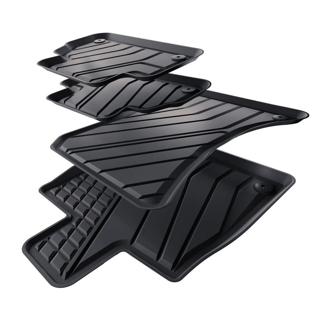 - Ideale Anpassung und Anwendung der vom Modell abhängigen Befestigung garantiert, dass die Teppiche während der Fahrt nicht verrutschen. Bei der Produktion werden die strengsten Qualitätsnormen eingehalten und die Materialien sind unbedenklich für Gesundheit und recyclebar. Die Teppiche sind wasserfest und leicht sauber zu halten (können unter laufendem Wasser oder mit Hochdruckreiniger gereinigt werden).