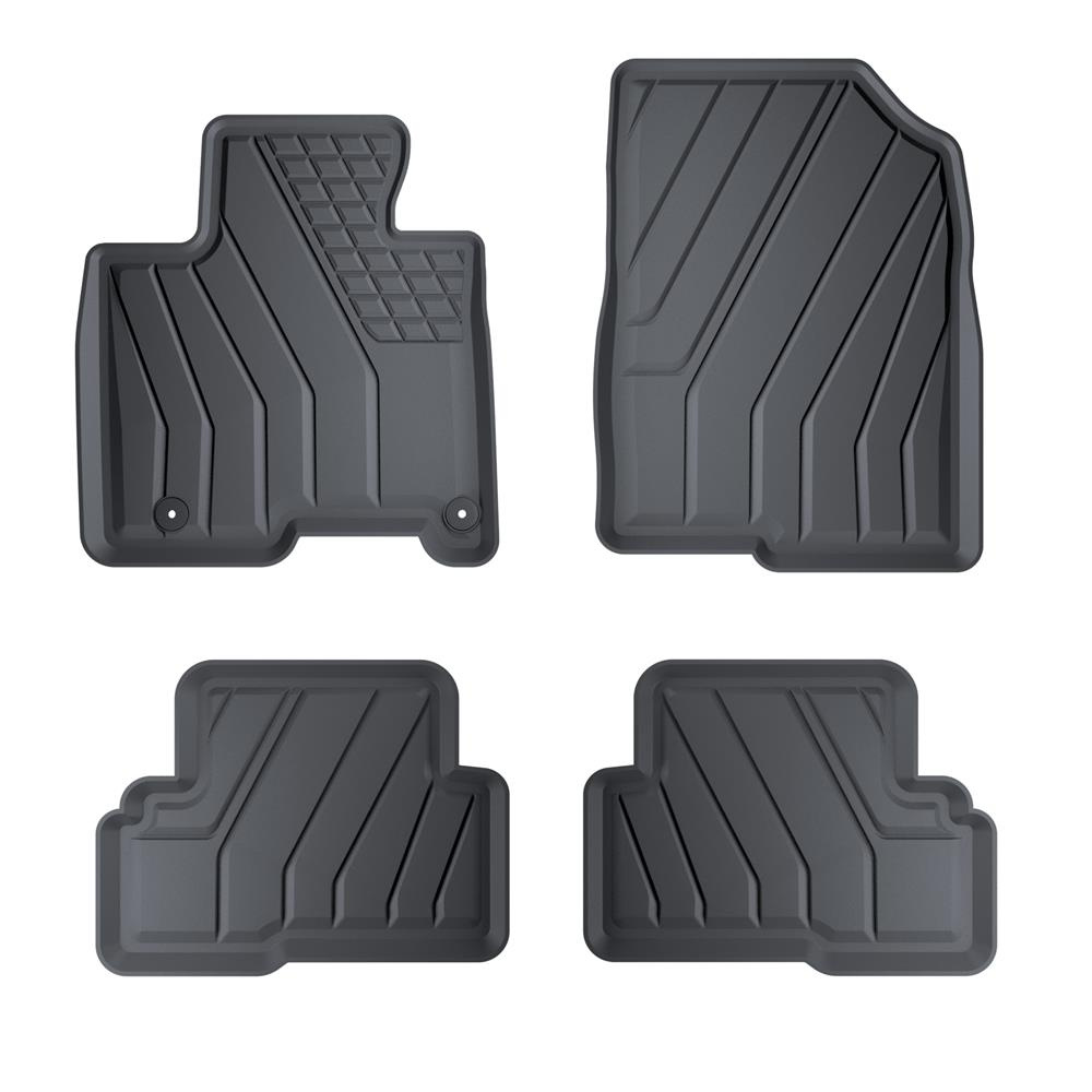 - Die Teppiche haben moderne Muster und mattes Finish. Jedes Set ist für das jeweilige Modell und Generation des Fahrzeugs bestimmt, was 100% Anpassung an den Fußboden des Autos garantiert. Im Set befinden sich auch Befestigungsclips, falls sie im jeweiligen Fahrzeugmodell vorgesehen sind.