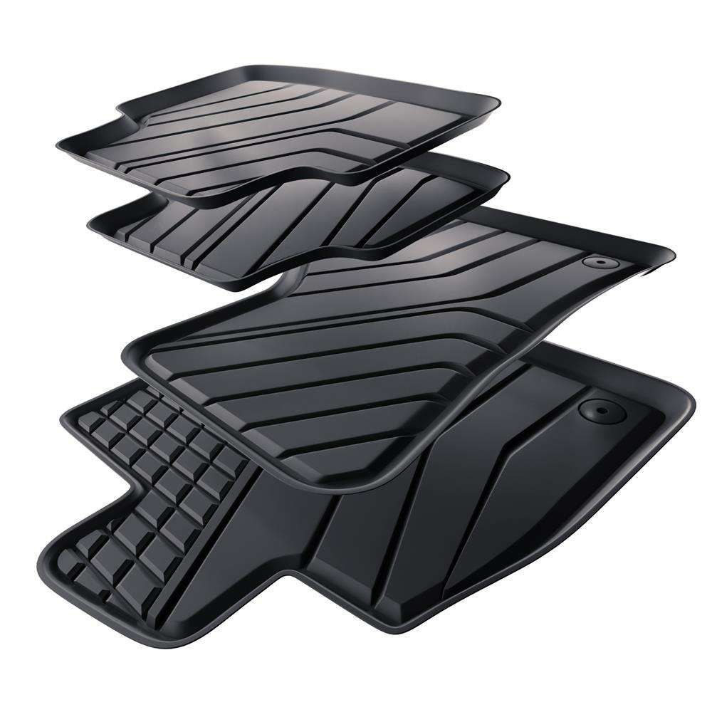 - Ideale Anpassung und Anwendung der vom Modell abhängigen Befestigung garantiert, dass die Teppiche während der Fahrt nicht verrutschen. Bei der Produktion werden die strengsten Qualitätsnormen eingehalten und die Materialien sind unbedenklich für Gesundheit und recyclebar. Die Teppiche sind wasserfest und leicht sauber zu halten (können unter laufendem Wasser oder mit Hochdruckreiniger gereinigt werden).