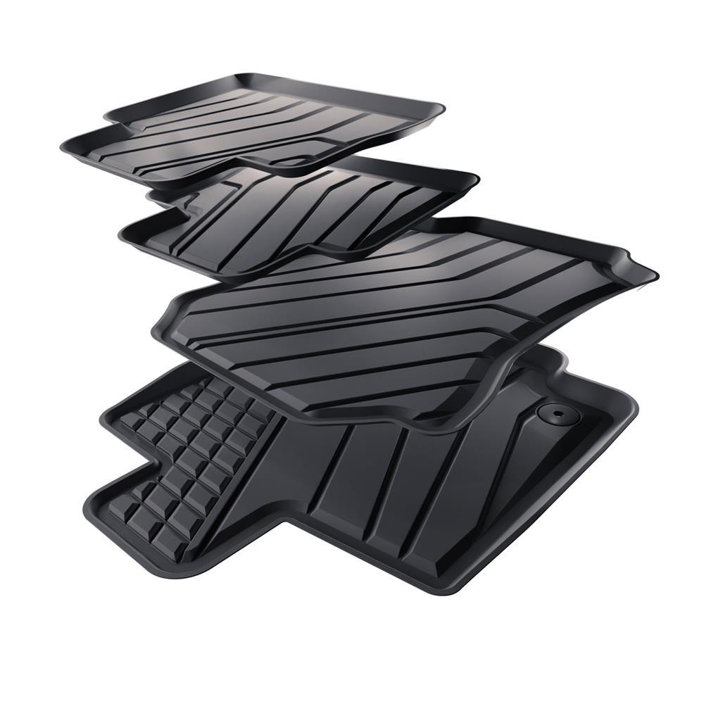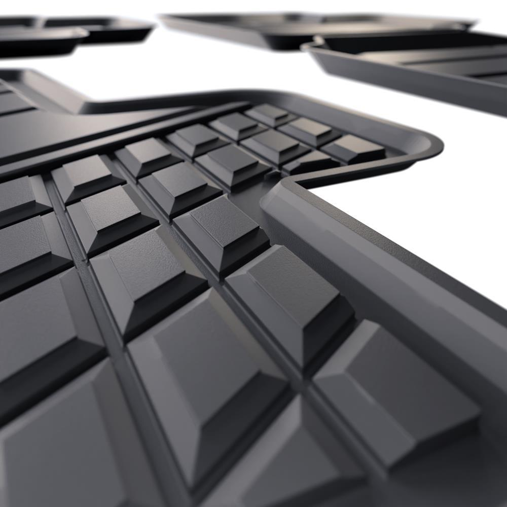 - Ideale Anpassung und Anwendung der vom Modell abhängigen Befestigung garantiert, dass die Teppiche während der Fahrt nicht verrutschen. Bei der Produktion werden die strengsten Qualitätsnormen eingehalten und die Materialien sind unbedenklich für Gesundheit und recyclebar. Die Teppiche sind wasserfest und leicht sauber zu halten (können unter laufendem Wasser oder mit Hochdruckreiniger gereinigt werden).