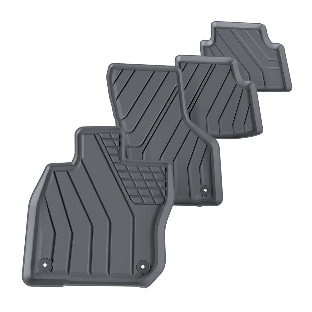 - Die Teppiche haben moderne Muster und mattes Finish. Jedes Set ist für das jeweilige Modell und Generation des Fahrzeugs bestimmt, was 100% Anpassung an den Fußboden des Autos garantiert. Im Set befinden sich auch Befestigungsclips, falls sie im jeweiligen Fahrzeugmodell vorgesehen sind.