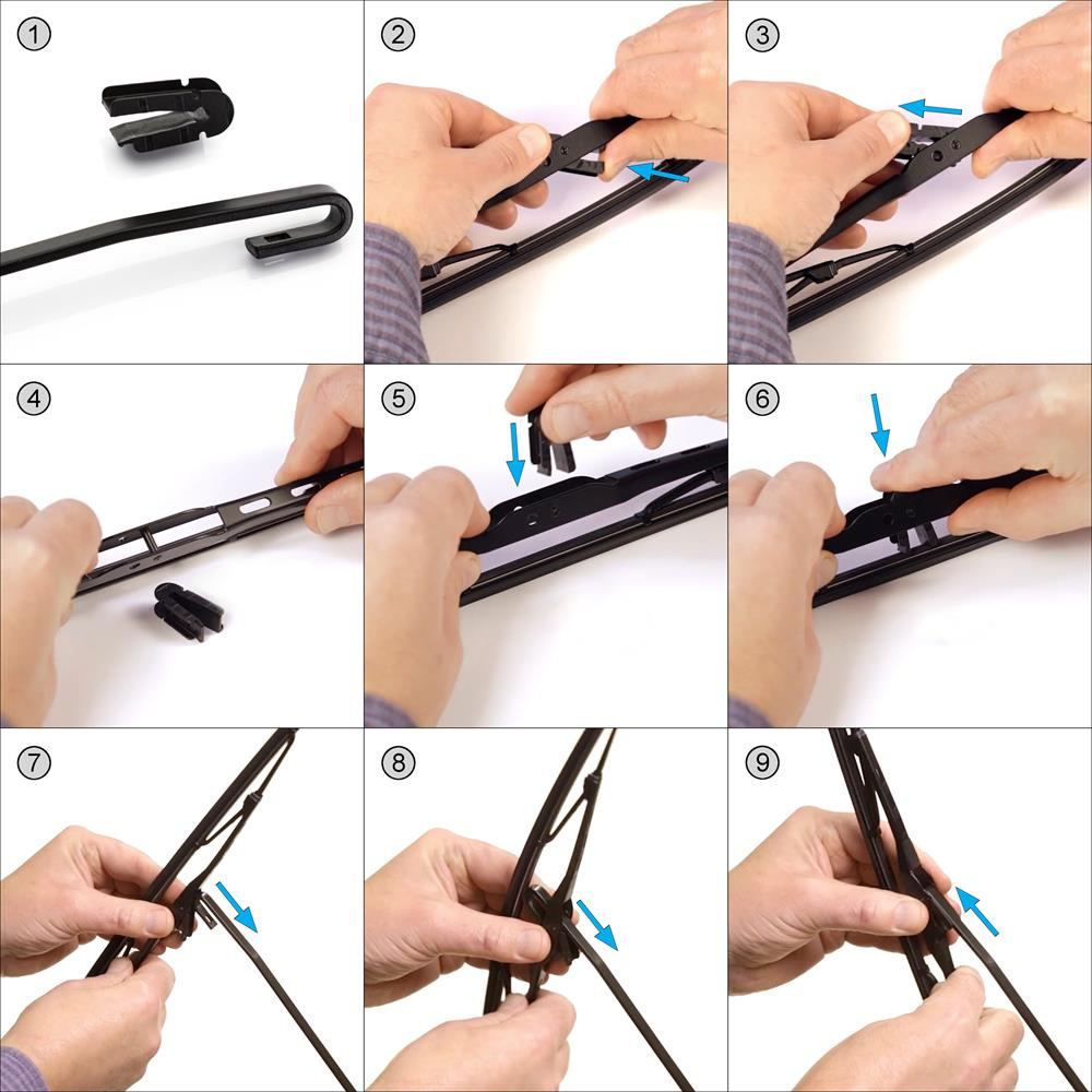 - Adapter-Satz (Elemente zur Verbindung der Wischerblätter mit dem Wischerarm): M2 + M9 .