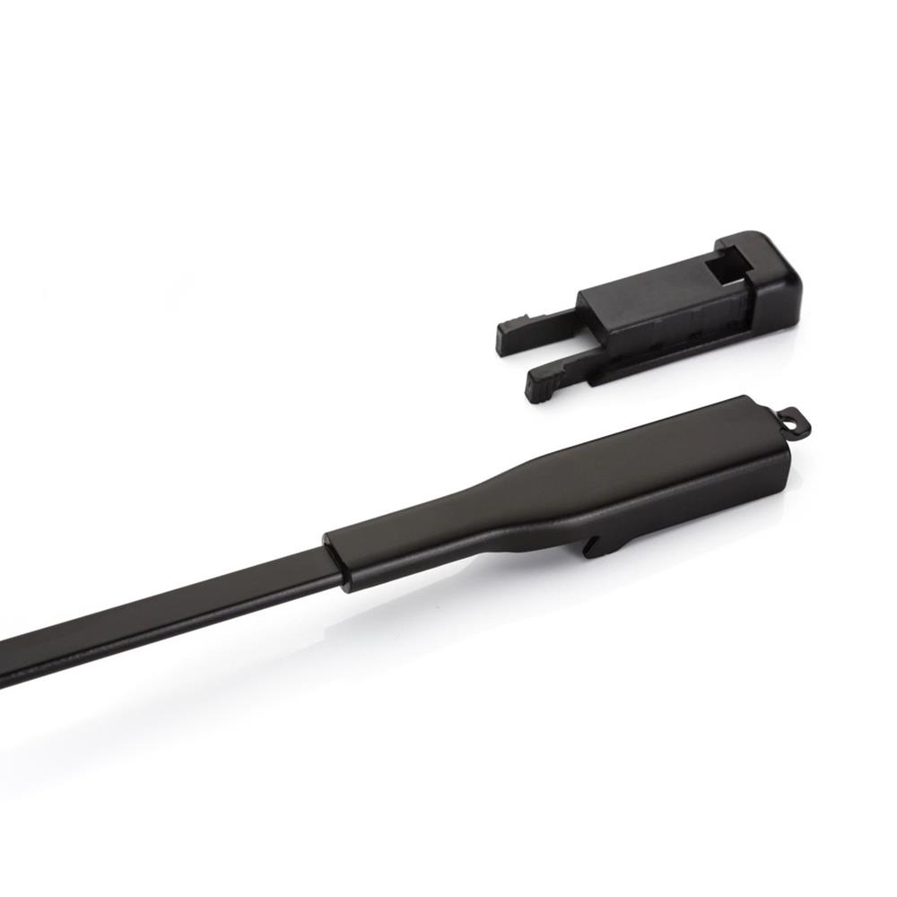 - Das Gummi wird aus einer Mischung aus natürlichem Kautschuk und Graphit hergestellt, was die Reibungsparameter verbessert und verursacht, dass die Scheibenwischer besonders leise laufen. Die seitlichen federnden Leisten bestehen aus Federstahl mit UV- und wetterfester Schicht (Salz, Säuren, Abgase).