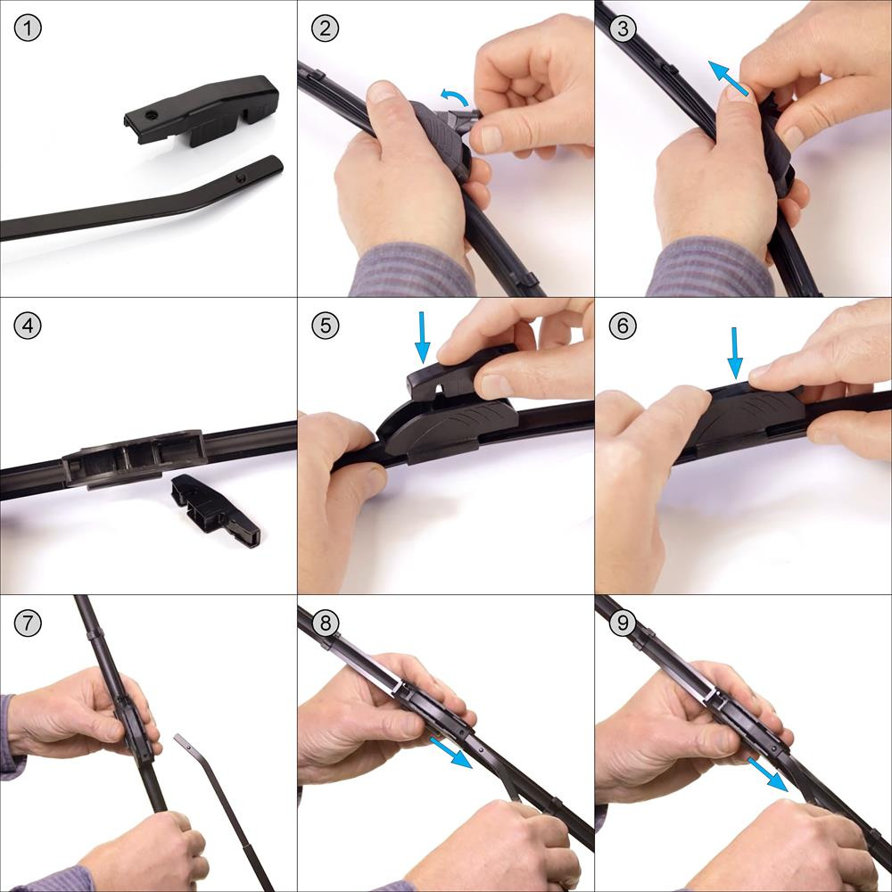 - Adapter-Satz (Elemente zur Verbindung der Wischerblätter mit dem Wischerarm): M6 + M11 .