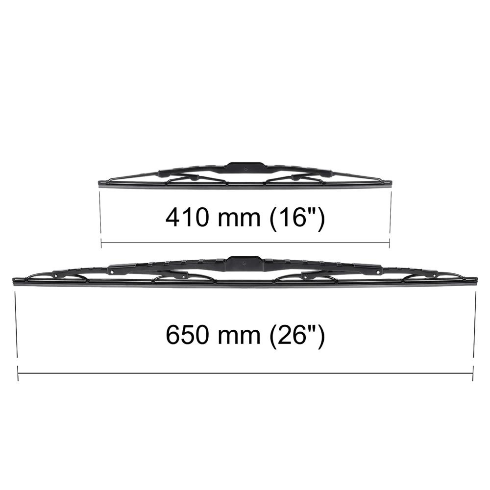 - Das Gummi wird aus einer Mischung aus natürlichem Kautschuk und Graphit hergestellt, was die Reibungsparameter verbessert und verursacht, dass die Scheibenwischer besonders leise laufen.