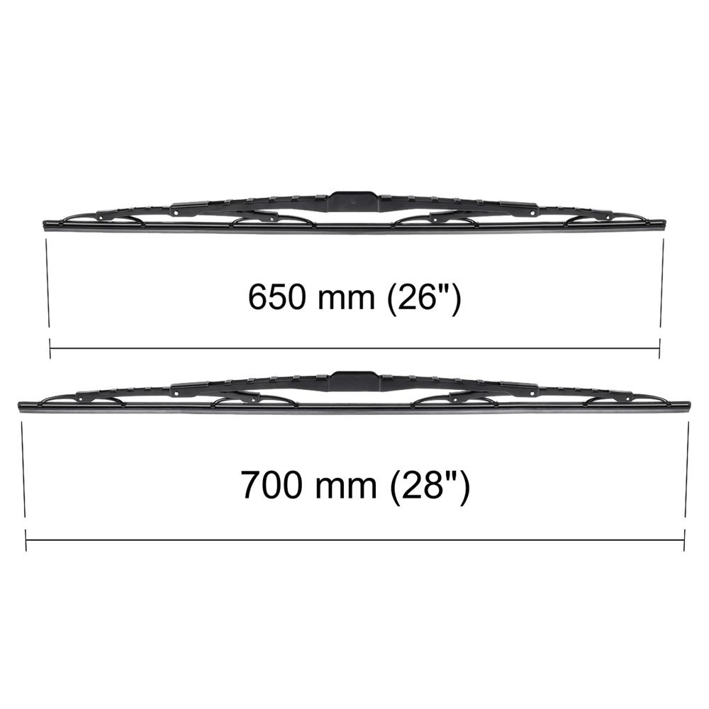 - Das Gummi wird aus einer Mischung aus natürlichem Kautschuk und Graphit hergestellt, was die Reibungsparameter verbessert und verursacht, dass die Scheibenwischer besonders leise laufen.