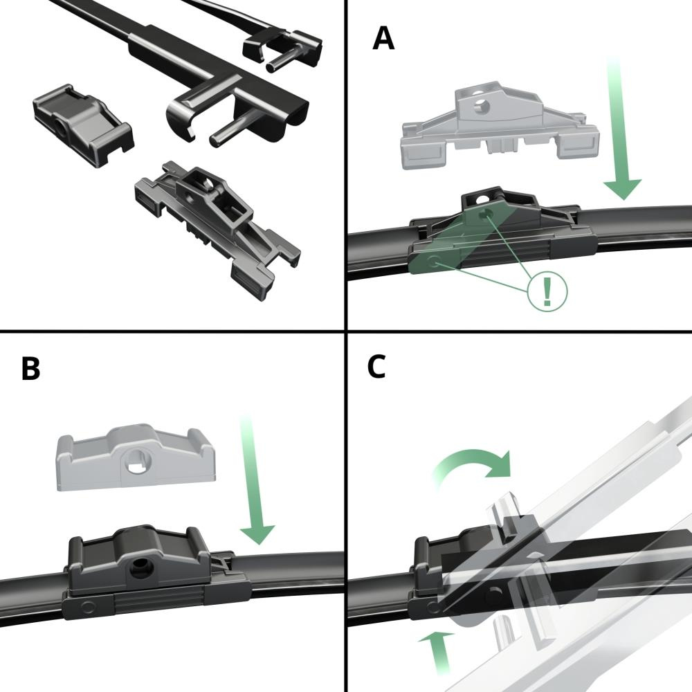 - Adapter-Satz (Elemente zur Verbindung der Wischerblätter mit dem Wischerarm): typ A \ typ B .